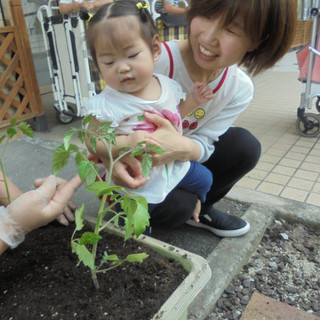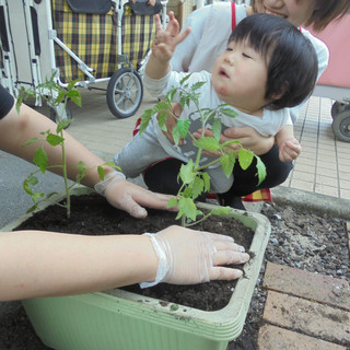 『大きくなってね🍅』とお話しながら土をかぶせてくれたり、『早く食べたいね』とお友達同士