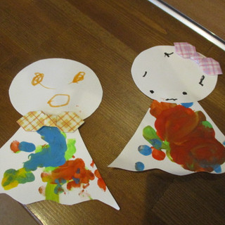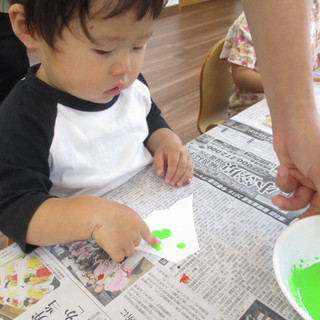 指に絵の具を付けて「てんてん、てんてん」とスタンプを楽しみました。
