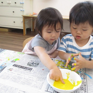 絵の具遊びが初めてのお友だちもとっても楽しそうです。