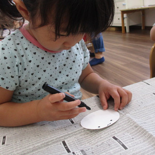 ポンポン、ポンポンとスタンプあそびと音を楽しんで作業していました。
