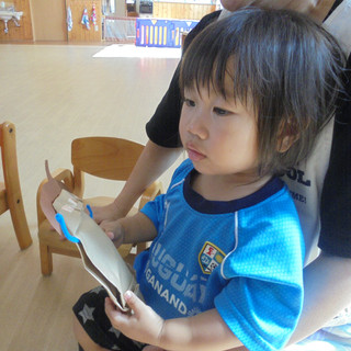 誕生カードや、折り紙の首飾りをお友達からもらうと、興味津々で見つめたりしていたお友達(*^^*)