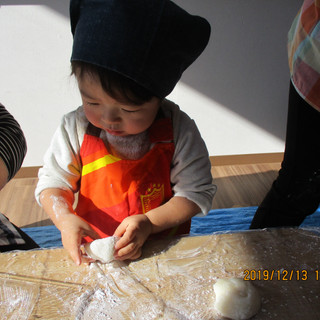 先生が丸めてくれたおもちを、伸ばしたり、手のひらでポンポン叩いたり、コネコネしたり…皆おもちの感触を楽しんでいましたよ😆🎶