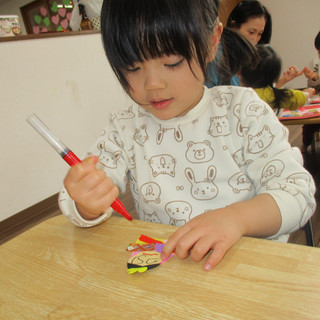 みんな思い思いにお顔を書き面白いひな人形を完成させていましたよ😉✨
