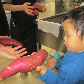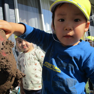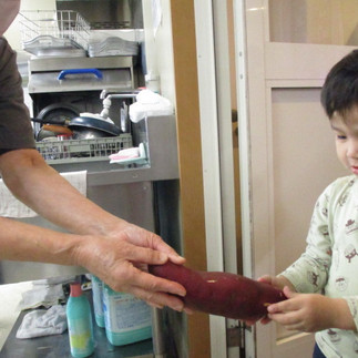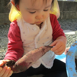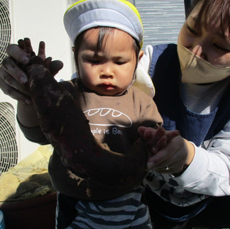 土の感触が苦手なお友だちもいましたが、指で触ってみたり、お芋の観察をしてみたりしました(^^)/