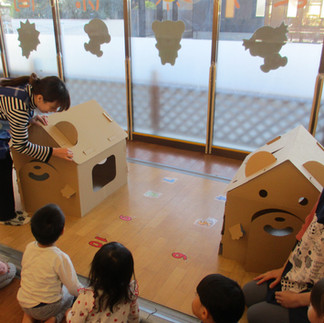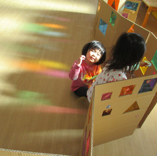今日のお楽しみ会は・・ダンボールで遊びます😊カラーセロハンやダンボールハウス(*^^*)💛