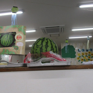 みんなで、すいかの種を見つけて「種があるね~」「すいか赤色だね~」とみんなですいかをじっくり観察しましたよ🎵