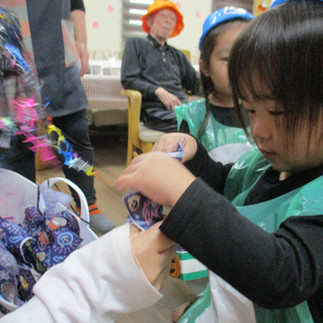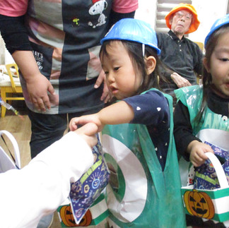 この後は、お隣りのデイサービスの方へ遊びに行ってきました!お菓子をもらえるかも?の噂を聞いて、みんなわくわくして向かいました。(笑)
