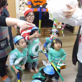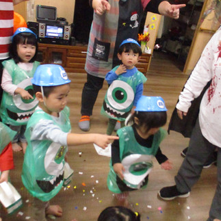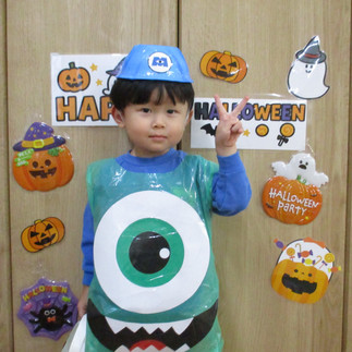 今年の仮装のタイトルは、0歳児さん「ジャック・オ・ランタン」1、2歳児さん「モンスターズインクのマイク」でした!みんなと~っても可愛いく変身しましたよ🎃