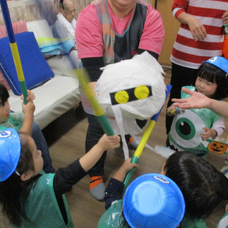 ということは?ミイラ男をやっつけたので、ご褒美のお菓子がもらえるかも!みんなで「トリック・オア・トリートー!!」と大きな声で言ってみました✨