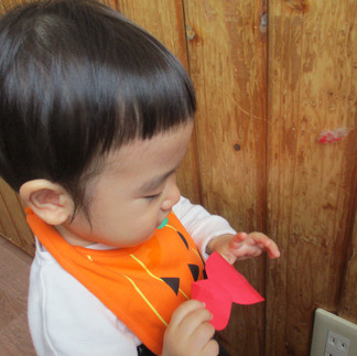 お部屋には、ハロウィンの飾りがいっぱいで「ここにもハロウィン!」「ここにも!」と子どもたちの楽しそうな声が聞こえてきました😊