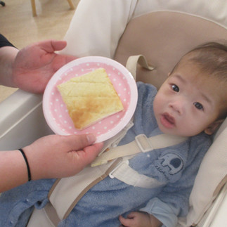 小さなお友達は、きなこをまぶしたパンを食べました✨✨