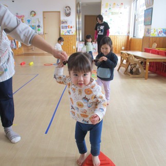 輪っかをジャンプしたり、バランスをとりながらの平均台(≧▽≦)