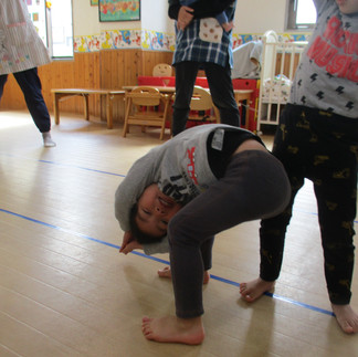 音楽に合わせて膝を曲げたり、伸ばしたり、片足バランス・・🤭
