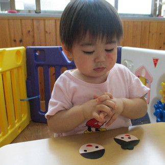 雨が降っているのを見て、『カエルさんいるかな😊?』、『でんでんむ~しむし🎵』と唄い、お友達と楽しそうにお話する姿が見られました☔