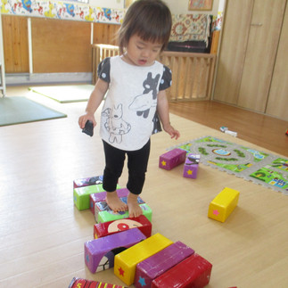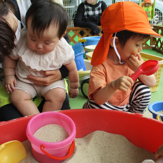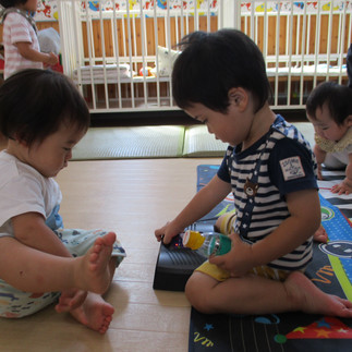 0.1歳児のお友達もテラスで遊んだり、お散歩したり、お部屋では楽器遊びやマット遊びも楽しみました🎵