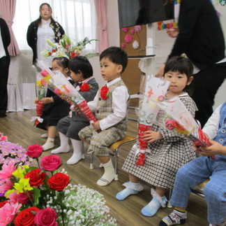 一旦、退場した子どもたちですが、もう一度会場に戻り花束💐を胸に添えて写真撮影を行いました。