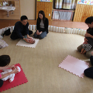 全体での親子ふれあい遊びがおわったら次は0歳児、1歳児、2歳児さんに分かれての活動です🤭