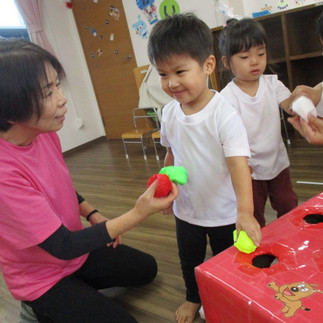ちょっとずつ笑顔も見られ、玉入れを楽しんでいました🎵