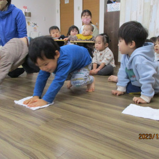 チョットおぼつかない雑巾かけではありましたが何処か真剣に取り組んでいるのが伝わってきました。