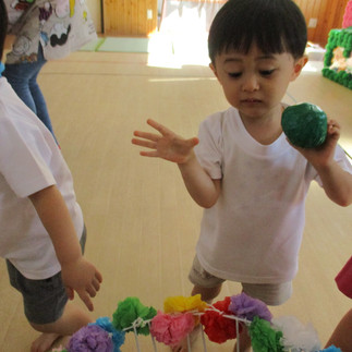 たくさん玉をかかえたり、玉を持って全力で走ったり。笑