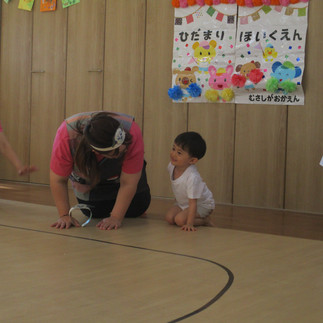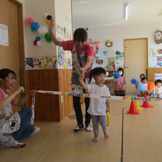 みんなの大好きな絵本のはらぺこあおむしに変身して、保護者の方に一緒に参加して頂いた競技です🌟トンネルをくぐったり、滑り台をすべったり、果物を拾ったりしてゴールを目指しました😊!