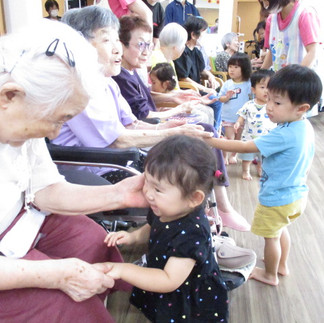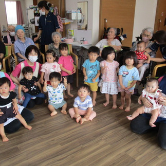 最後は、みんなで写真撮影をした後は、「バイバ~イ」とおじいちゃんおばあちゃんたちとタッチや握手をしてたくさん触れ合いましたよ🎵
