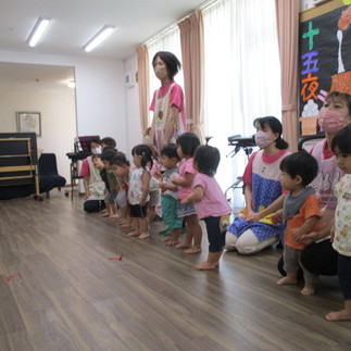 最初にいつもお集まりで歌っている「とんぼのめがね」と「大きな栗の木の下で」を歌いました。