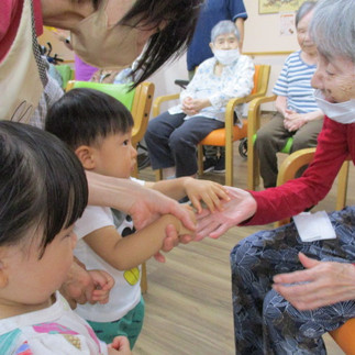 今日は、介護の方の敬老会に参加させていただきました。おじいちゃん、おばあちゃんたちに大歓迎してもらいましたが、初めはちょっぴり緊張している様子の子どもたち。