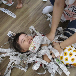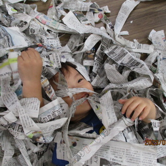 こんなにも大胆に新聞紙で戯れて遊ぶことにみんなのたくましさを感じました😊