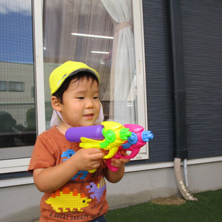 水遊びが始まりました😄園庭に着くとすぐにプールの水を触ろうとしていた子ども達です✨水鉄砲をして遊んだりタライやプールに入ったりして楽しんでいましたよ🎵