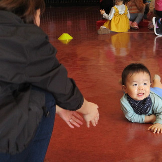 かっけこでは、名前を呼ばれると「はーい❢」元気よく手を挙げてくれましたよ✋0歳児のお友だちはハイハイや歩いてお母さんたちのところへ行きました😊1歳児、2歳児のお友だちは、走ってお母さんお父さんのところに行きましたよ~⭐